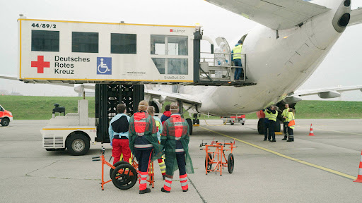 If there is free capacity in hospitals within the EU, the patients are taken to Rzeszów in Poland and flown out from there in collective transports There are no direct flights from Ukraine because of the threat of Russian missiles.